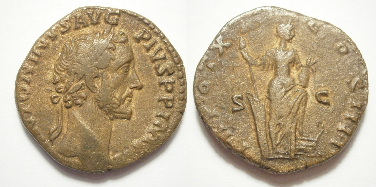 “ANTONINVS AVG PIVS PP IMP II, laureate head right